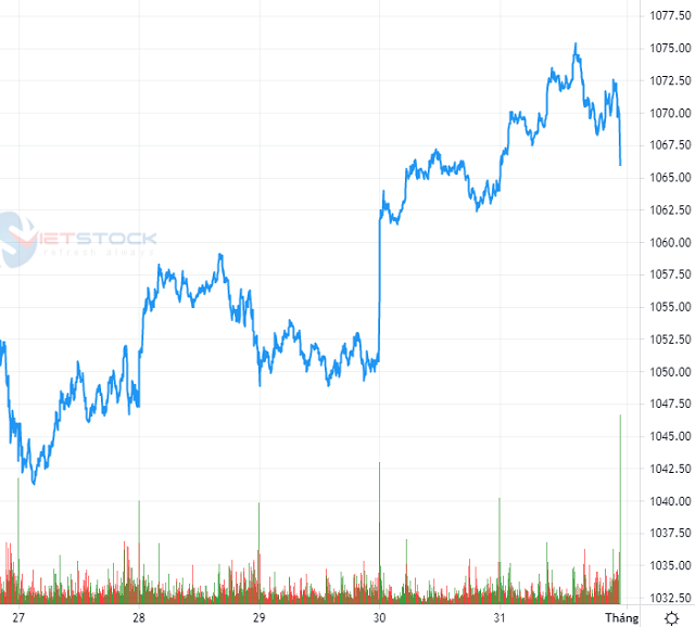 Trên khung Daily, giá đã phá vỡ cản trên nên đà tăng dự kiến tịnh tiến dần lên 1.081-1.088 điểm. NĐT xem xét chiến lược Long ở nhịp điều chỉnh trong phiên với mục tiêu 1078 điểm với dừng lỗ 1.064 điểm. Vị thế Short mở ra tại vùng 1.078-1.081 điểm, dừng lỗ 1.082 điểm.
