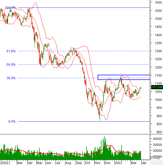 Mục tiêu mà chỉ số đang hướng tới là vùng 1.120-1.150 điểm (tương đương ngưỡng Fibonacci Retracement 38,2% và đường SMA 200 ngày). Nếu chỉ số vượt lên được vùng trên thì triển vọng dài hạn sẽ tích cực hơn.