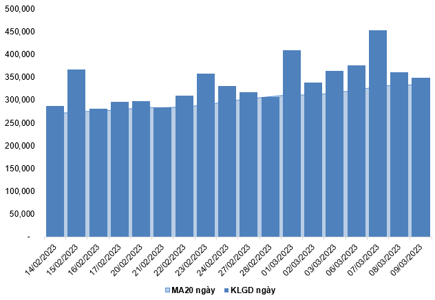 Thêm vào đó, khối lượng giao dịch cũng duy trì ở mức cao và nằm trên mức trung bình 20 ngày cho thấy nhà đầu tư đang giao dịch sôi động trở lại.