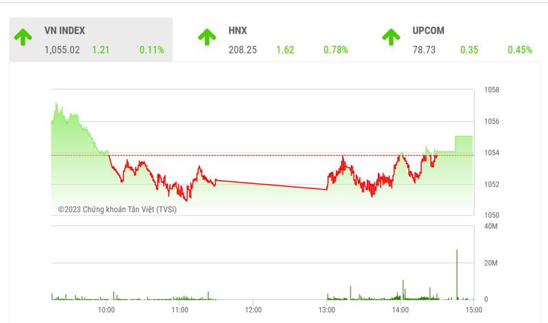 Kịp bản cũ lặp lại, VN-Index thoát hiểm cuối phiên: Đóng cửa phiên giao dịch ngày 18/4, sàn HOSE có 226 mã tăng và 153 mã giảm, VN-Index tăng 1,21 điểm (+0,11%), lên 1.055,02 điểm. Tổng khối lượng giao dịch đạt hơn 539,7 triệu đơn vị, giá trị 9.579 tỷ đồng, tăng gần 19% cả về khối lượng và giá trị so với phiên hôm qua. Giao dịch thỏa thuận đóng góp hơn 45,3 triệu đơn vị, giá trị 1.116,7 tỷ đồng.