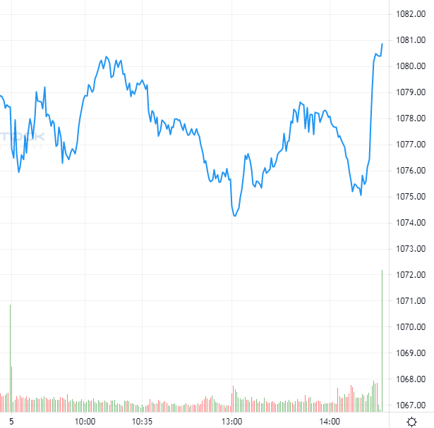 Lấy lại sắc xanh, VN-Index vượt "cản lớn": Phiên giao dịch ngày 5/4, VN-Index đóng cửa ở mốc 1080,86 điểm, tăng nhẹ 2,41 điểm (+0,22%). Thanh khoản tiếp tục có sự sụt giảm nhẹ với gần 800 triệu cổ phiếu được giao dịch, tổng khối lượng khớp lệnh trên toàn sàn đạt mức hơn 12 nghìn tỷ đồng. Mặc dù đa số các chỉ số chính chỉ tăng nhẹ nhưng sắc xanh vẫn tỏ ra áp đảo trong phiên hôm nay khi có đến 250 mã tăng điểm, trong khi đó số mã giảm điểm chỉ là 128, còn lại là 68 mã đóng cửa ở mốc tham chiếu.