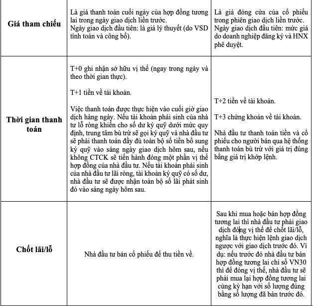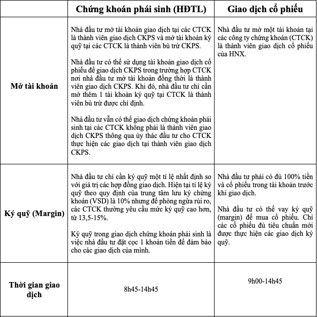 Giao dịch chứng khoán phái sinh và giao dịch cổ phiếu có những khác biệt sau: