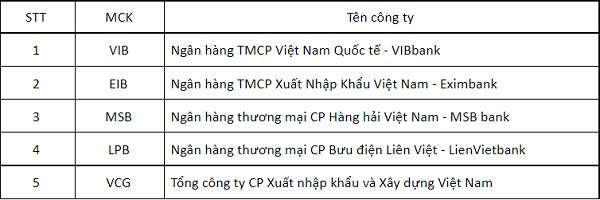 Sau đây là danh mục nhóm cổ phiếu dự phòng cho rổ VN30 mới nhất được cập nhật cùng với các mã: VIB, EIB, MSB, LPB, VCG.
